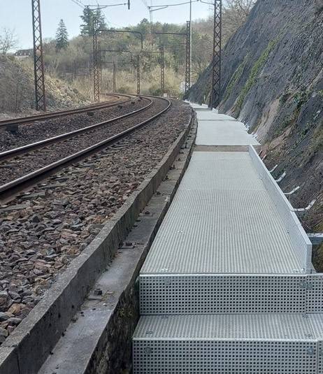 Der Gitterrost kann an Bahnstrecken eingesetzt werden, wo er eine einfache Montage